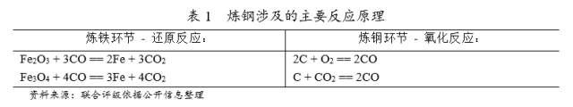 (1)粗鋼冶煉 冶煉工藝分為長流程和短流程兩種。長流程系通過高爐將鐵礦石等原燃料煉成鐵水,再經(jīng)過轉(zhuǎn)爐,將鐵水冶煉成粗鋼;短流程系將廢鋼通過電爐將廢鋼冶成粗鋼。其中,長流程鋼材生產(chǎn)大體可以分為兩個環(huán)節(jié):煉鐵環(huán)節(jié)(高溫下的氧化還原反應(yīng))和煉鋼環(huán)節(jié)(高溫下的氧化反應(yīng))。