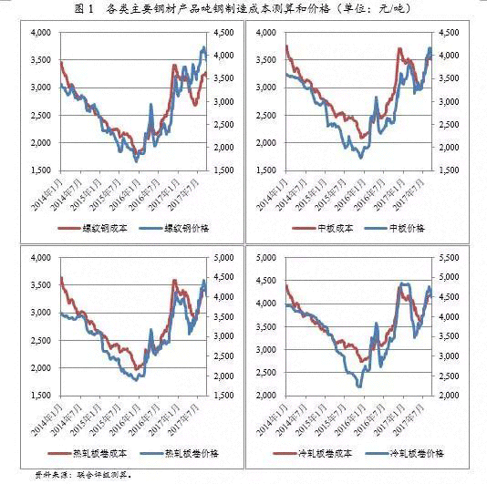 煤炭方面,同樣受供給側(cè)改革影響,2016年9月以來,煤炭市場亦呈現(xiàn)大幅回暖趨勢,國內(nèi)焦煤價格大幅攀升。受產(chǎn)業(yè)特性影響,整個煤炭市場價格啟動先于鋼材產(chǎn)品價格,國內(nèi)焦煤價格一度攀升至高位;2017年1~3月,國內(nèi)主要地區(qū)煉焦煤均價1,217.56元/噸,同比上漲127.39%。因主產(chǎn)地煤礦陸續(xù)復(fù)工復(fù)產(chǎn)、執(zhí)行330個工作日生產(chǎn)、進口煉焦煤市場轉(zhuǎn)暖等因素影響,2017年1季度以來,焦煤價格整體保持平穩(wěn)。展望2018年,焦煤價格將維持相對平穩(wěn)走勢;短期內(nèi),冬季限產(chǎn)以及冬儲的臨近可能會季節(jié)性拉高焦煤價格。 3、盈利展望 展望2018年,國內(nèi)鋼鐵行業(yè)的供需關(guān)系將繼續(xù)得到改善。在去產(chǎn)能持續(xù)深化的過程中,行業(yè)產(chǎn)能利用率、行業(yè)集中度、債務(wù)水平以及盈利水平均呈現(xiàn)改善??紤]到下游整體需求仍然穩(wěn)健,鋼材價格波動空間有限;受采暖、環(huán)保等因素影響,鋼材庫存將維持低位,鋼價將得到一定的支撐。綜合看,2018年,鋼鐵行業(yè)仍將維持較高的盈利水平。 六 總 結(jié) 從成本來看,原燃料成本占據(jù)絕對位置;細(xì)分來看,原燃料成本是引致鋼企制造成本分化的主要因素,產(chǎn)品結(jié)構(gòu)、原燃料自給程度和自給成本、區(qū)位(采購的運輸成本)和能耗工藝水平等因素均對鋼鐵企業(yè)燃料成本產(chǎn)生影響。展望2018年,外礦的新增供給仍將維持高位,鐵礦石價格大幅回暖的可能性不大,焦煤價格亦將整體保持平穩(wěn)。國內(nèi)鋼鐵行業(yè)的供需關(guān)系將繼續(xù)得到改善,鋼鐵行業(yè)仍將維持較高的盈利水平。 綜合看,未來,隨著鋼鐵企業(yè)景氣度回升,鋼鐵企業(yè)信用風(fēng)險將繼續(xù)被盈利水平掩蓋。長期看,各鋼鐵企業(yè)的盈利能力仍有賴于對成本的有效控制;同時,鋼鐵企業(yè)的信用質(zhì)量仍高度取決于鋼材制造成本。