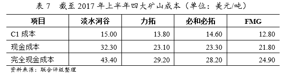 展望2018年,基建投資雖然可能小幅放緩,但仍將保持穩(wěn)健和較大規(guī)模,將繼續(xù)發(fā)揮托底作用;雖然地產(chǎn)投資受到銷售增速下滑的影響,但鑒于低庫存現(xiàn)狀以及政策引導(dǎo)下公共住房建設(shè)提速,2018年地產(chǎn)投資增速有望略好于今年的表現(xiàn);鐵路、公路、水路建設(shè)導(dǎo)致的用鋼需求平穩(wěn)釋放。 2、噸鋼制造成本展望 鐵礦石方面,2017年1~9月,四大礦山產(chǎn)量合計8.4億噸,同比增2.7%;值得注意的是,四大礦山第三季度產(chǎn)量同比有所減少。從產(chǎn)能角度看,受中國供給側(cè)結(jié)構(gòu)性影響,鐵礦石整體價格水平處于低位,主流礦山擴產(chǎn)意愿下降;進一步的,不排除各大礦山出現(xiàn)限產(chǎn)提價的動作。此外,我們考慮到四大礦的成本水平已處于低位,未來成本繼續(xù)下降的空間有限。展望2018年,國內(nèi)鋼鐵企業(yè)繼續(xù)享受低成本優(yōu)質(zhì)鐵礦石的預(yù)期將有所削弱;但整體看,外礦的新增供給仍將維持高位,鐵礦石價格大幅回暖的可能性不大。