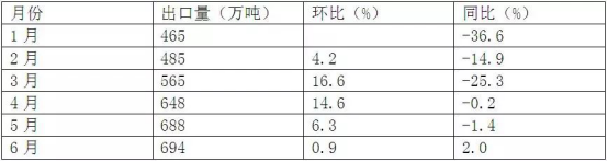 主要受到國際市場鋼材價格上漲和人民幣貶值的雙重刺激,盡管上半年貿(mào)易壁壘加劇,但中國鋼材出口依然保持較大數(shù)量規(guī)模,而且呈現(xiàn)月度出口量環(huán)比持續(xù)回升態(tài)勢。其中2月份全國鋼材出口量環(huán)比增長4.2%,3月份增長16.6%,4月份增長14.6%,5月份增長6.3%,6月份增長0.9%。同時,全國鋼材出口同比降幅亦不斷收窄,到6月份已經(jīng)轉(zhuǎn)為同比增長2%,月度出口量亦回升至694萬噸。
