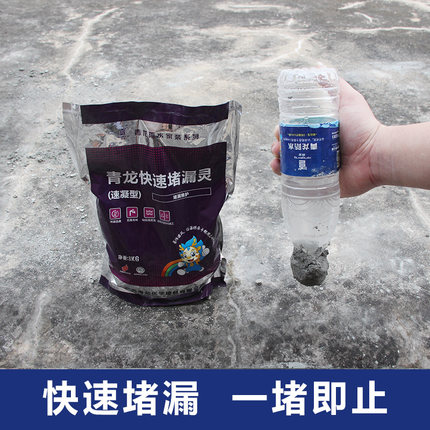 用鑿子或沖擊鉆將滲水部位打成4~5cm深,直徑2~3cm的孔洞,用水沖洗干凈后,使用衛(wèi)佳凈快速堵漏靈,按照一定的比例(粉料:水=1:0.25)將用料配好,然后捏成料團(tuán)(料團(tuán)大小與孔洞相近),手掌感覺發(fā)熱,迅速將料團(tuán)塞于孔中,并用手掌壓住幾分鐘,手掌感到發(fā)硬后,松開手掌,再用木板壓平,然后在堵漏靈處周圍約10cm處再抹上一邊刮抹料。